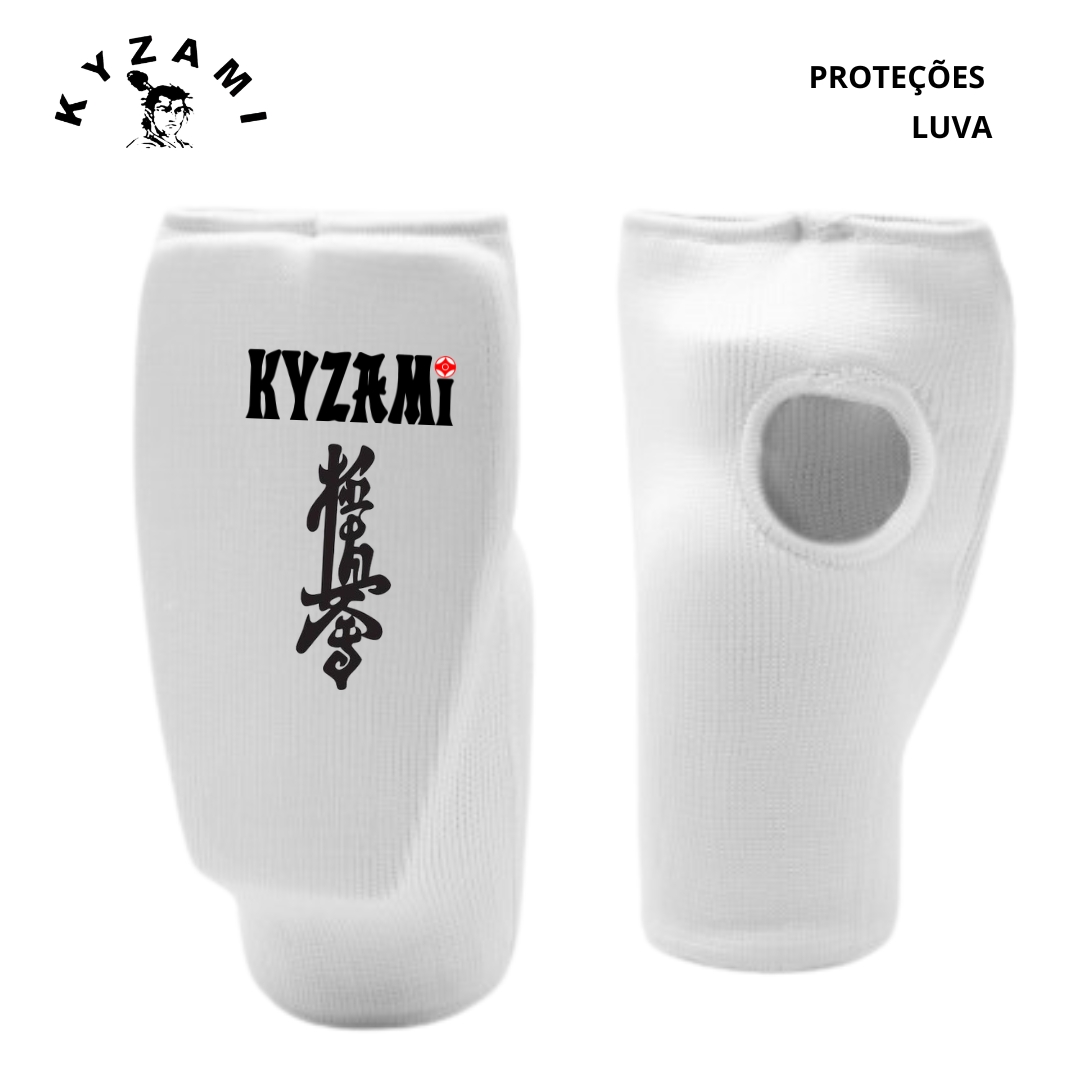 Luva Kyokushin, com preenchimento ergonômico externo, permitindo perfeita liberdade de movimento.